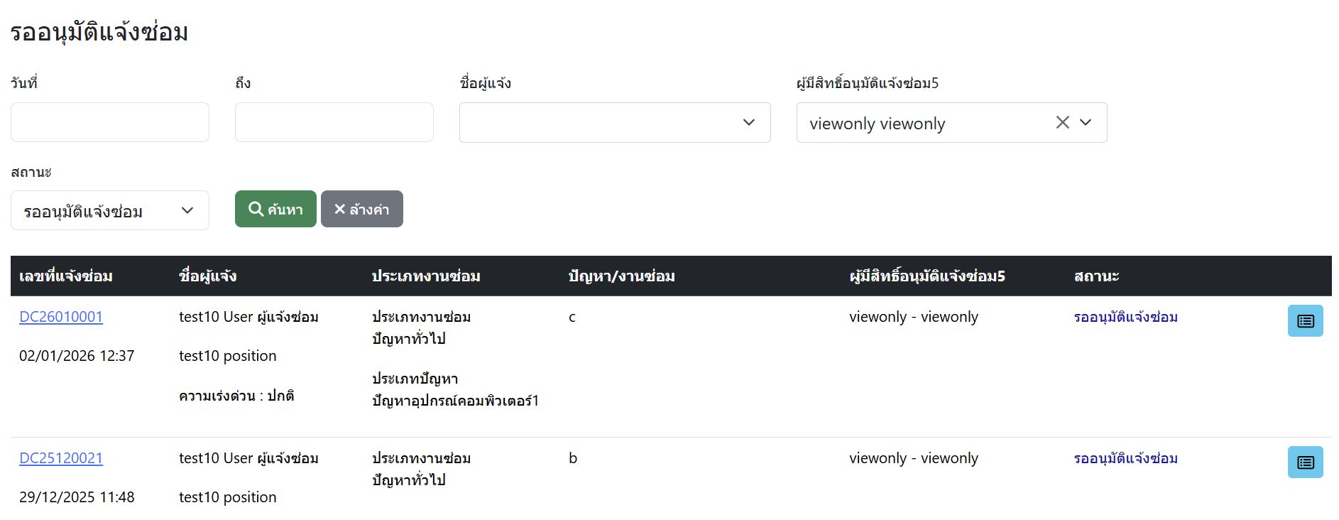| ระบบอนุมัติก่อนแจ้งซ่อม | |||||
