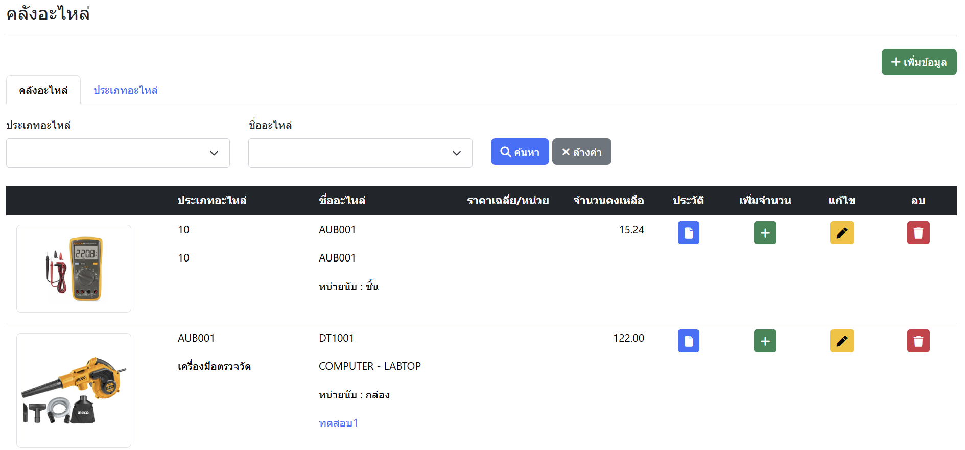 ระบบช่วยบริหารจัดการอะไหล่ซ่อมบำรุงอย่างเป็นระบบ ลดปัญหาอะไหล่ขาดหรือเกินความจำเป็น โดยสามารถ